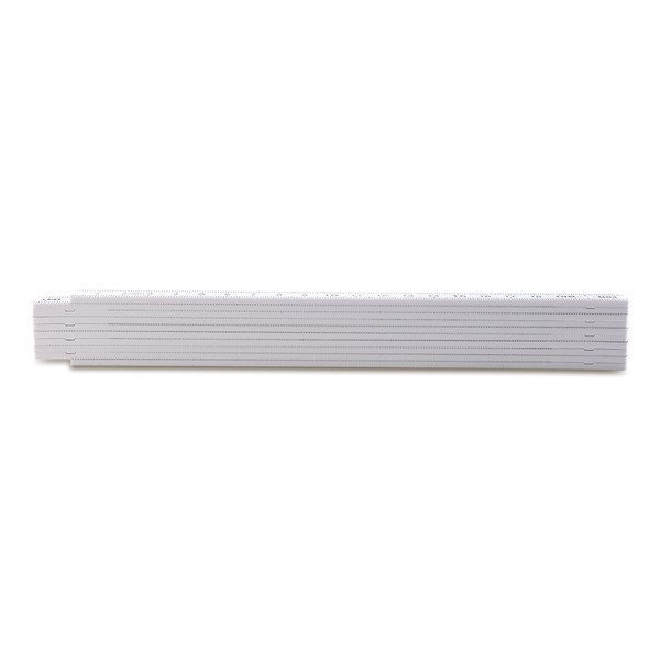 2 m foldable measure in the shape of a traditional carpenter's tool. Scale in cm.