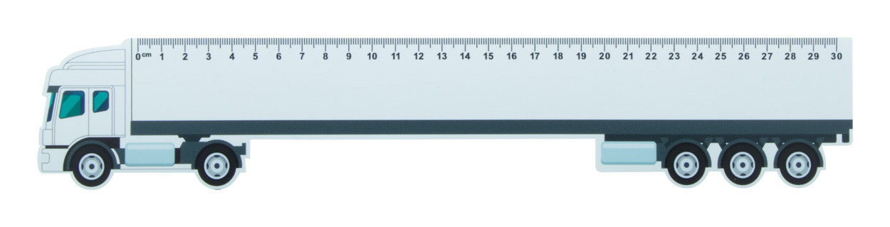 Truck shaped, 30 cm flexible plastic ruler with custom graphics. Price includes UV LED printing on one side. MOQ: 100 pcs.