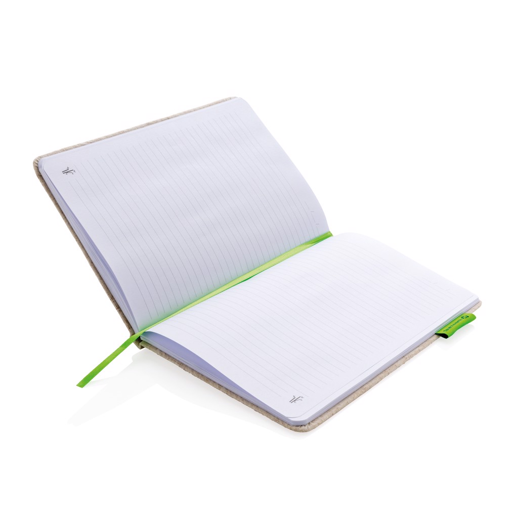 Back to nature with this jute notebook with 80 sheets/160 pages of bamboo paper. Elastic band and bookmark ribbon.