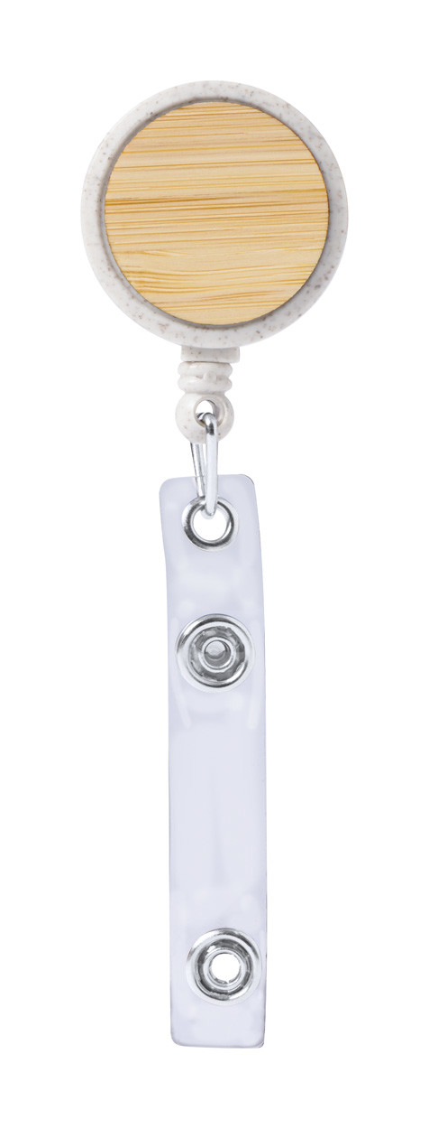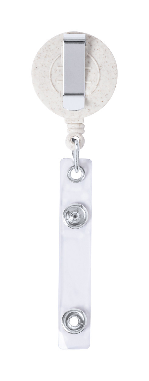 Ecological wheat straw plastic and bamboo badge holder with press-stud closure, telescopic line and metal clip.