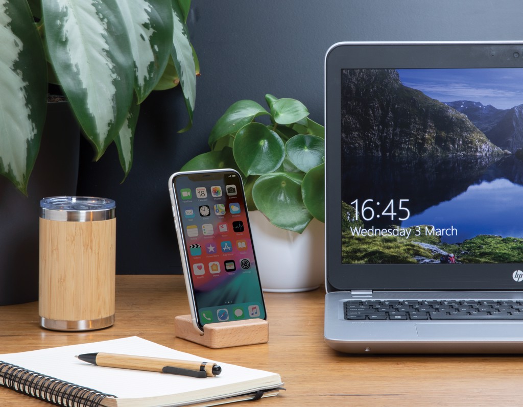 Phone stand made from completely natural bamboo. Perfect on your desk or when you are working from home.