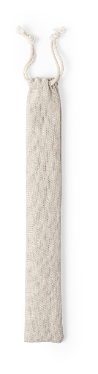 Set of 2 reusable natural bamboo drinking straws and cleaning brush in cotton pouch. The diameter and surface of the straws may vary.