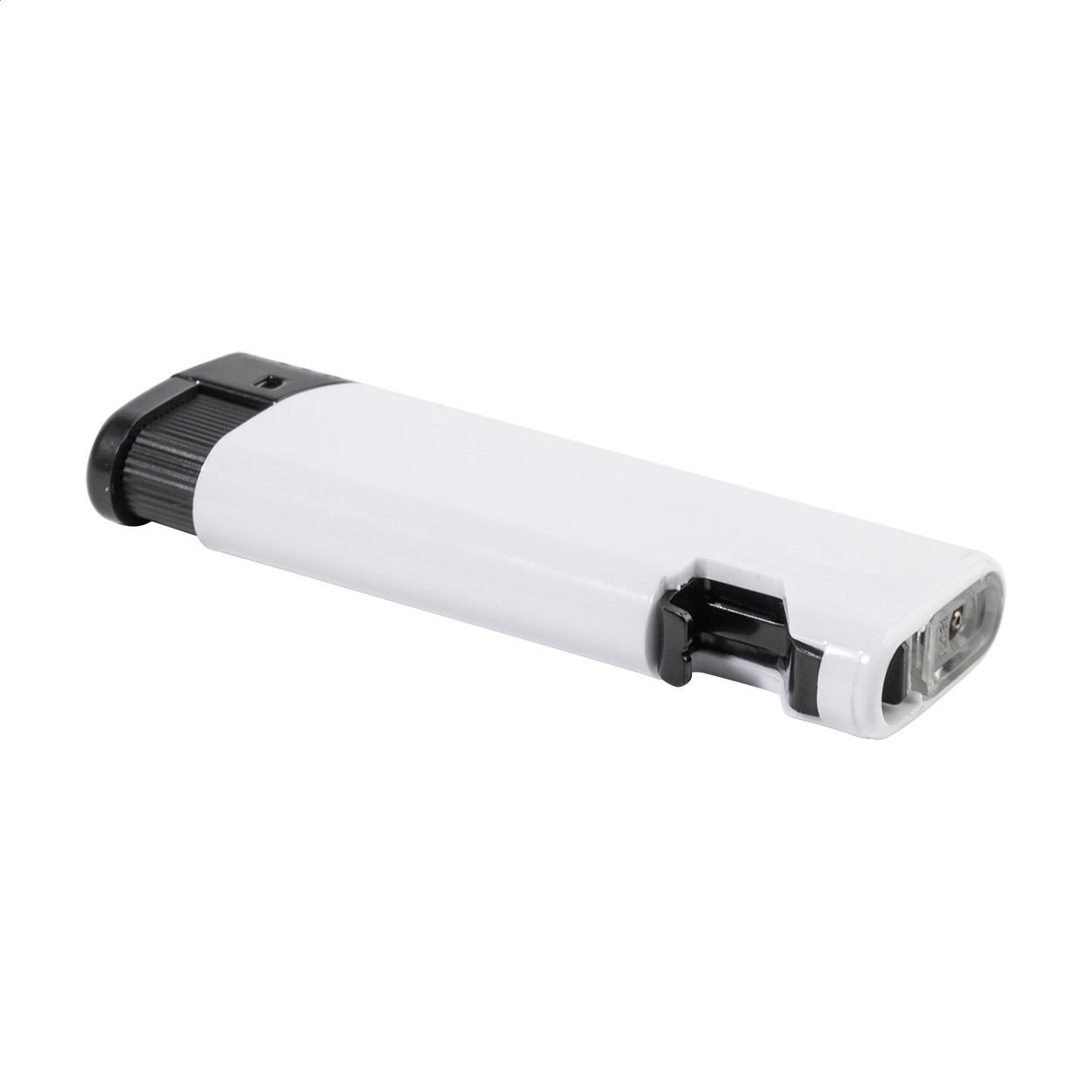 Refillable, plastic piezo lighter with bottle opener. Child resistant. Delivered with approx. 80% gas level. Only available in full export carton quantities (Multiplies of 500 pcs)!