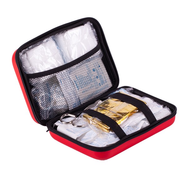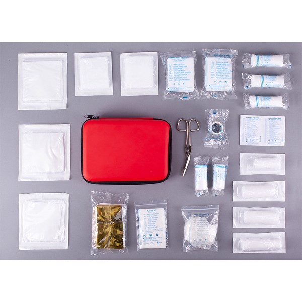 A must have in every car. First aid kit consisting of 40 elements. Complies with DIN13164. It consists of: Adhesive tape 2,5x5 cm, Adhesive bandage 10x6 cm 4pcs, Adhesive bandage 3.8 x 7.2 cm 2pcs, Adhesive bandage 12 x 2 cm 2pcs, Adhesive bandage 7.2 x 1.9 cm 2 pcs , Adhesive bandage 7.6 x 2.5 cm 4 pcs, Dressing bandage 6 cm, Dressing bandage 8 cm, disopsable gloves 4 pcs, conforming elastic bandages 6 cm 2pcs, conforming elastic bandages 8 cm 3 pcs, First aid blanket, Sterile wound dressing 3pcs, Triangular bandages 2 pcs, Scissors , Wet wipe 2 pcs, Manual. Complies with DIN13164. Product in accordance with 93/42/EEC Directive.