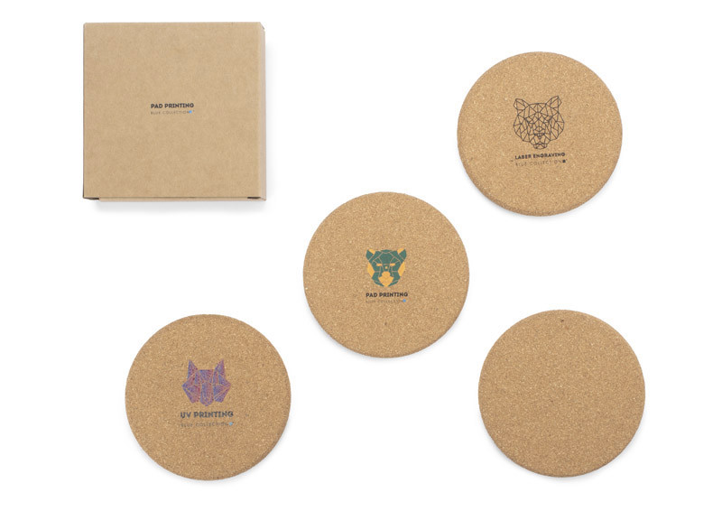 A set of four cork pads (coasters?) will be perfect at home, matching any type of interior. About 7 mm thick cork pads are very durable. They perfectly protect countertops against scratching. Packed in a kraft box.