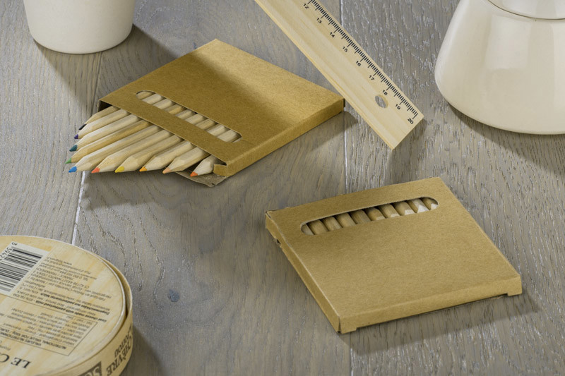 Wooden 12-colour pencils. Packed into a handy carton case with a window. Logo might be imprinted on the carton case.
