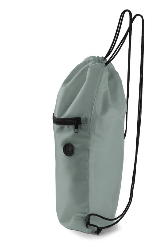 A fashionable bag-shaped backpack. On hot days, you can use the backpack to store food and drinks and enjoy their freshness as the main compartment is thermally insulated. The backpack has a zipped outer pocket with headphone access. The product is made of polyester with PEVA-type thermal insulation.