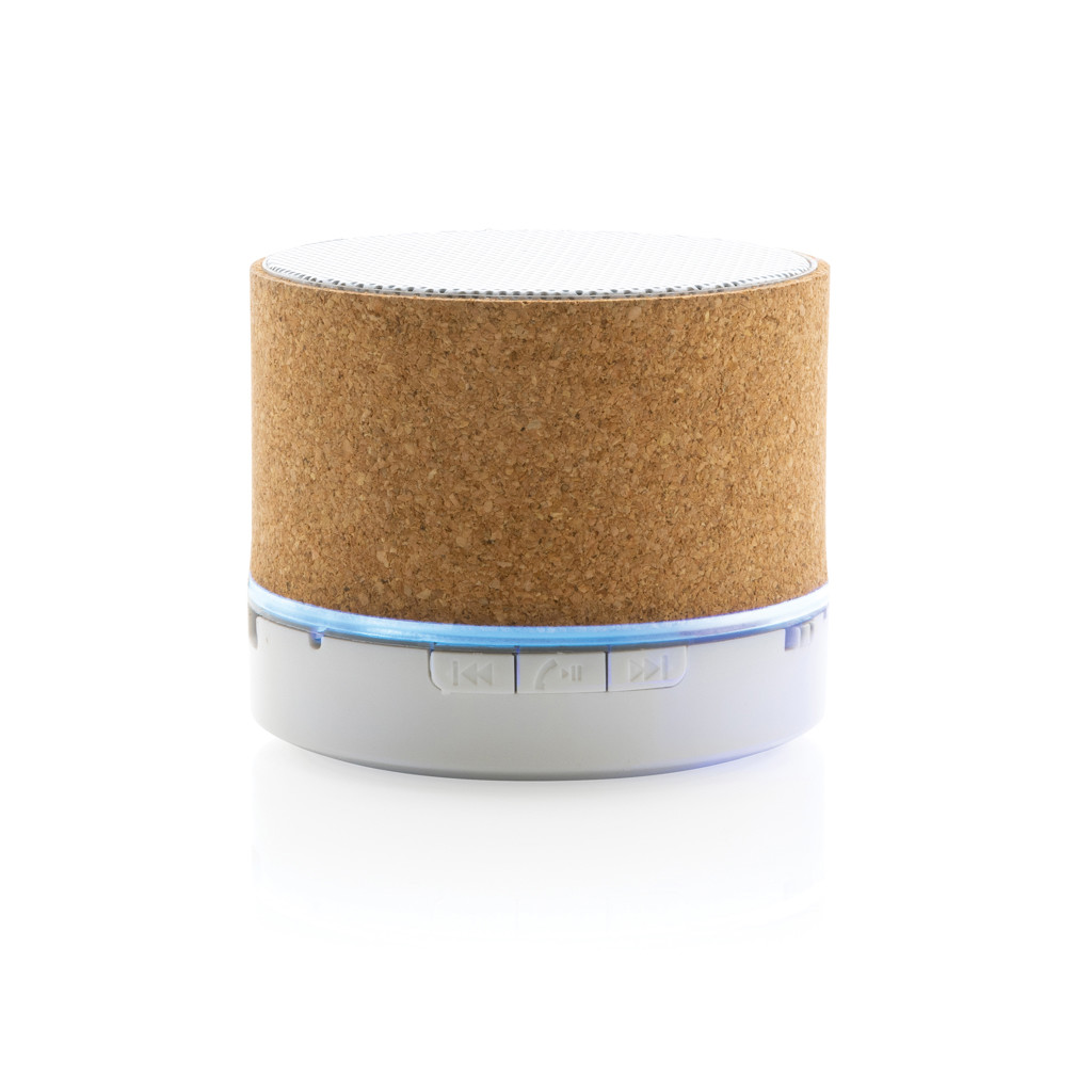 3W wireless speaker made with FSC® 100% cork casing. The speaker is equipped with a 400 mAh battery to ensure up to 3 hours of playing time and BT5.1 for smooth connection and clear sound. The speaker has an integrated light when switched on. Connection range up to 10 metres. With mic and pick up function to answer calls. Packed in FSC mix FSC® box. Including RCS certified recycled TPE charging cable. Item and accessories 100% PVC free.