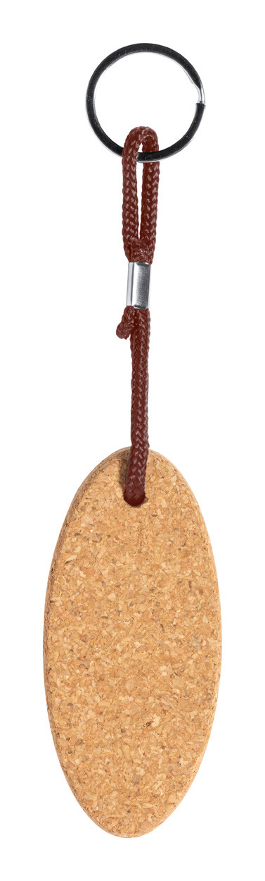 Natural cork floating keyring with cord and metal ring.