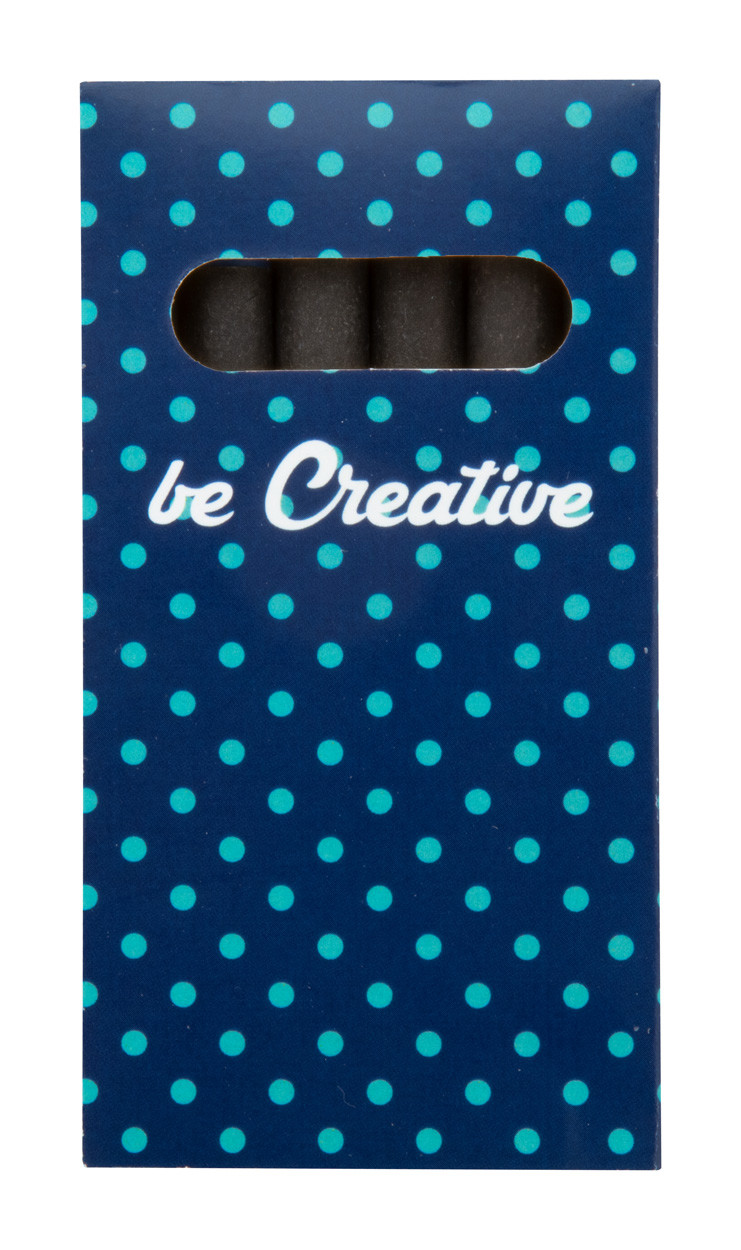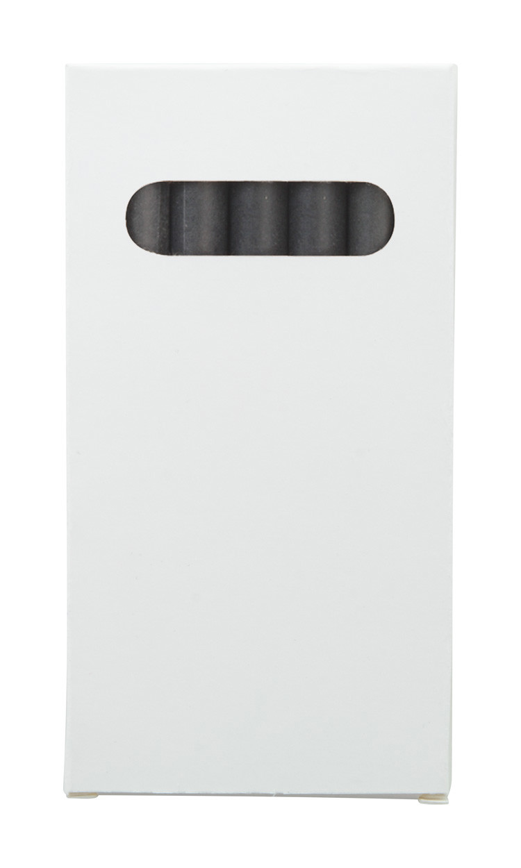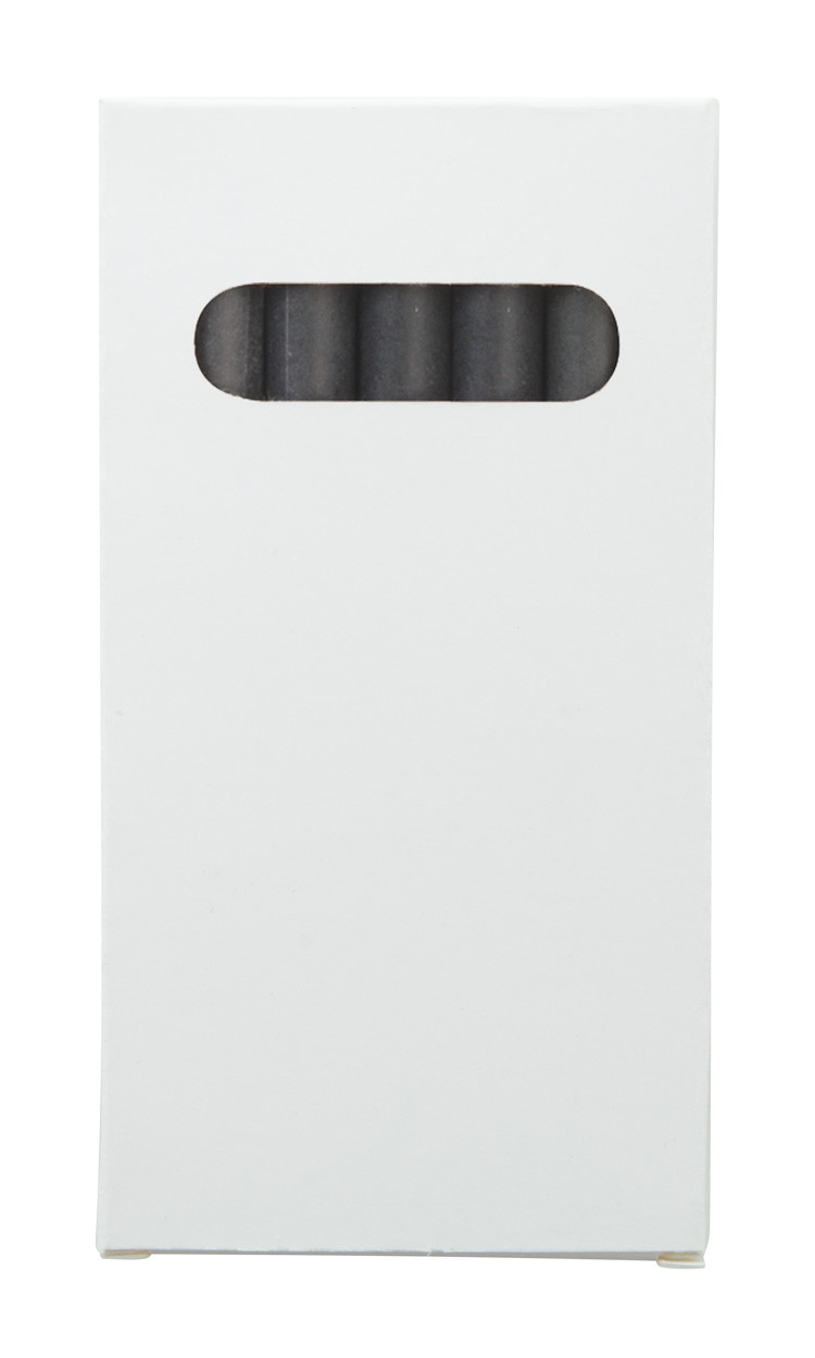 Black paper covered, coloured crayons (6 pcs) in full colour printed paper box. Price includes digital printing. MOQ: 100 pcs.
