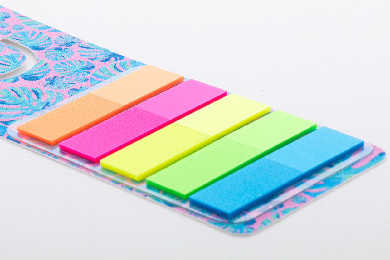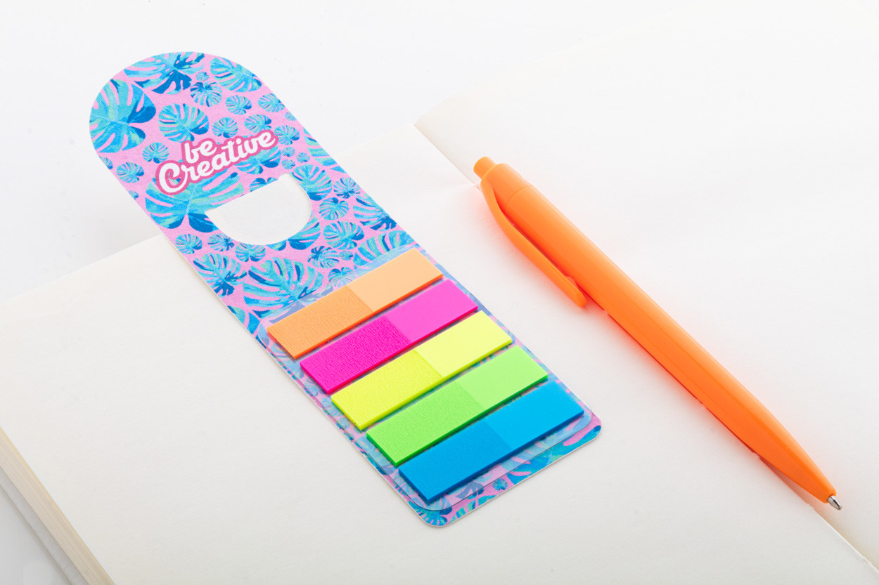 Custom made, seed paper bookmark with page markers. Includes 100 plastic film page markers in 5 assorted colours (44×12 mm). Price includes full colour printing on front side. MOQ: 100 pcs. With assorted wildflower seeds.
