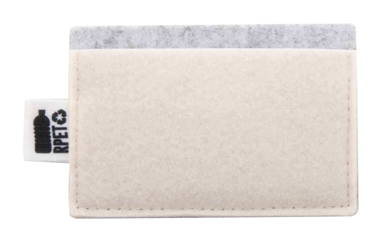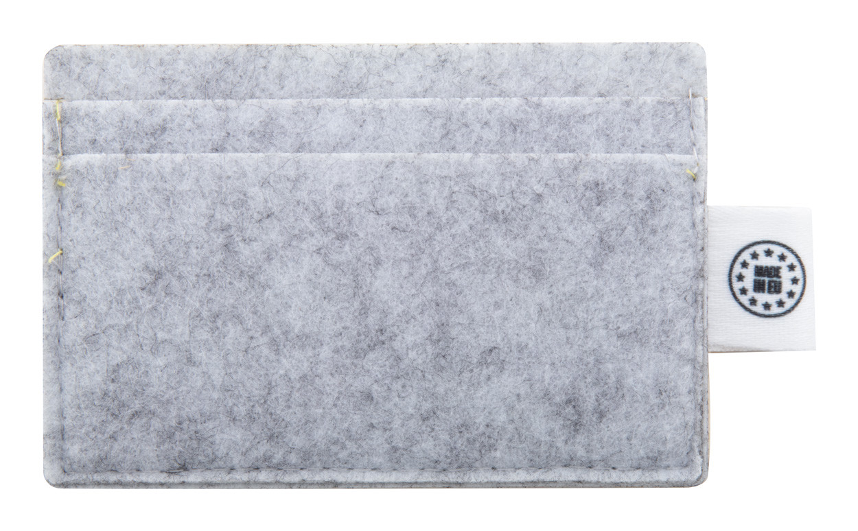 Custom made, RPET felt credit card holder with 3 card slots and full colour printed front side. With distinctive RPET label. Price includes sublimation printing. MOQ: 50 pcs.