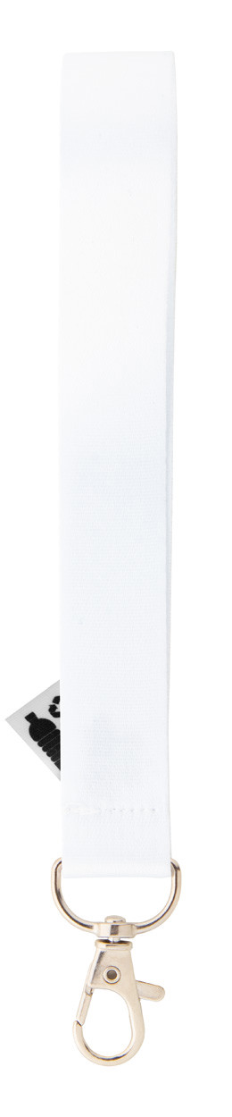 Custom made, RPET polyester keyring with metal carabiner. With inside RPET label and sublimation printed graphics on both sides. MOQ: 100 pcs.