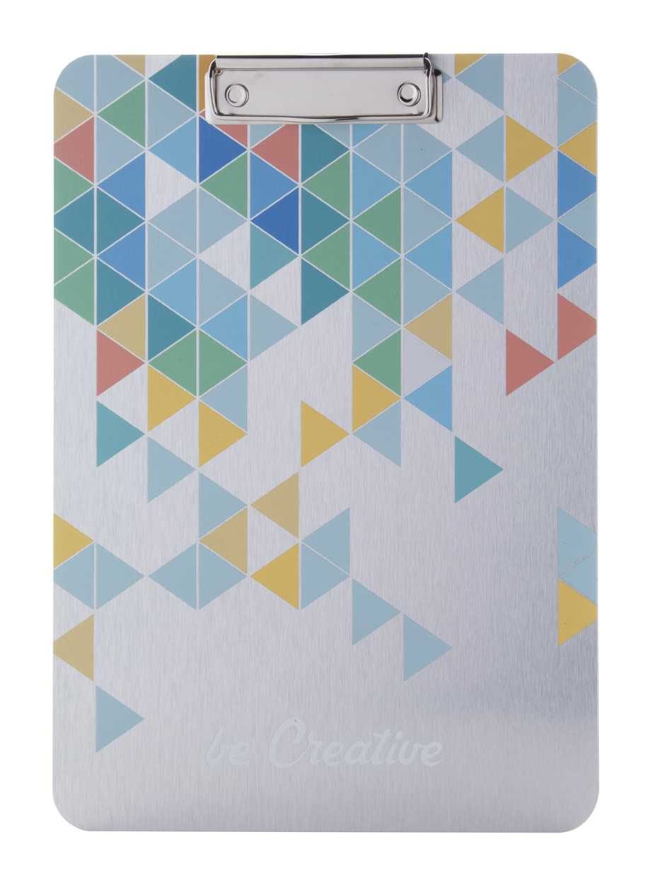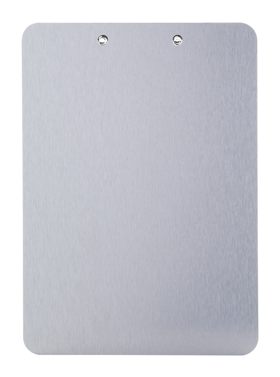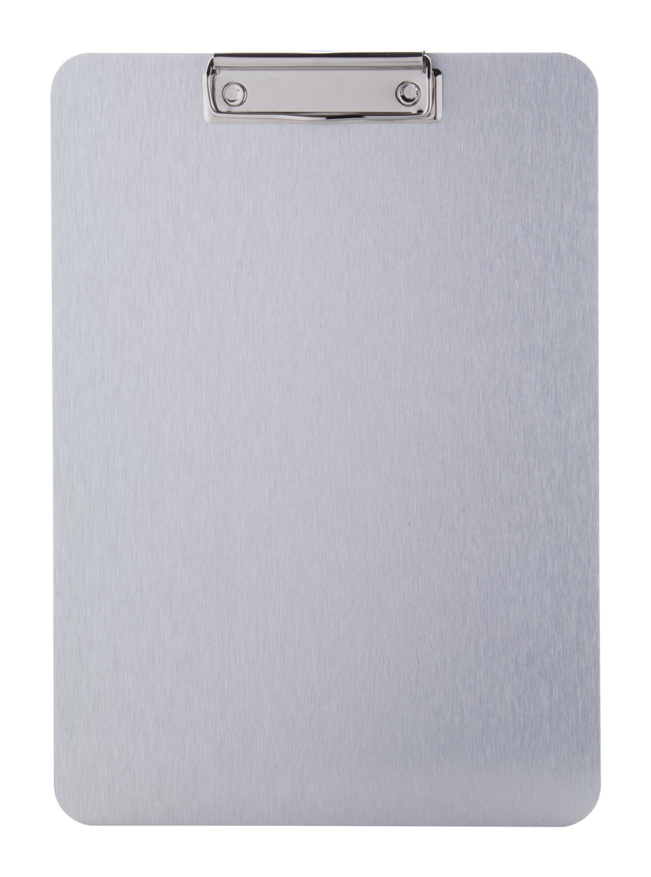 Custom made, A4 sized clipboard in brushed aluminium composite with custom graphic on front side. MOQ: 25 pcs.