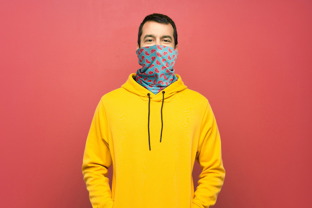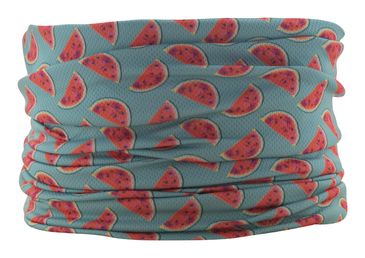 Custom made, multipurpose scarf in breathable and quick-drying polyester with all-over sublimation printed graphics. Made of 100% polyester (135 g/m²) fabric. MOQ: 100 pcs.