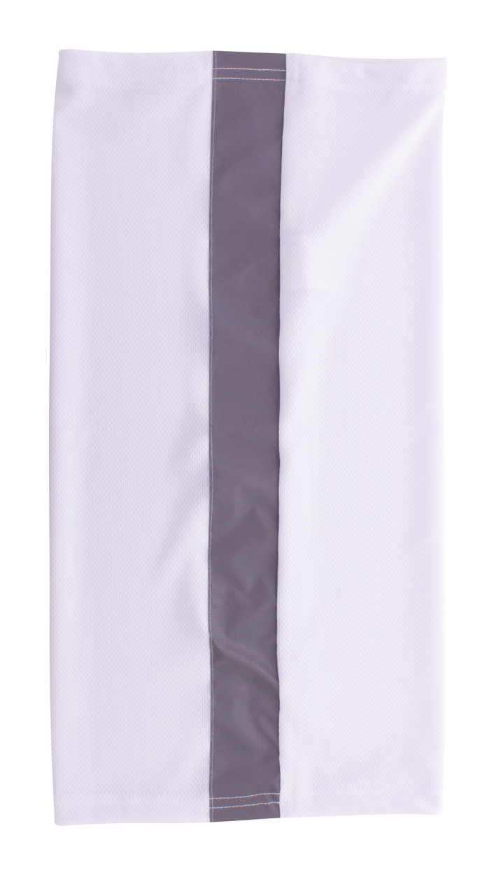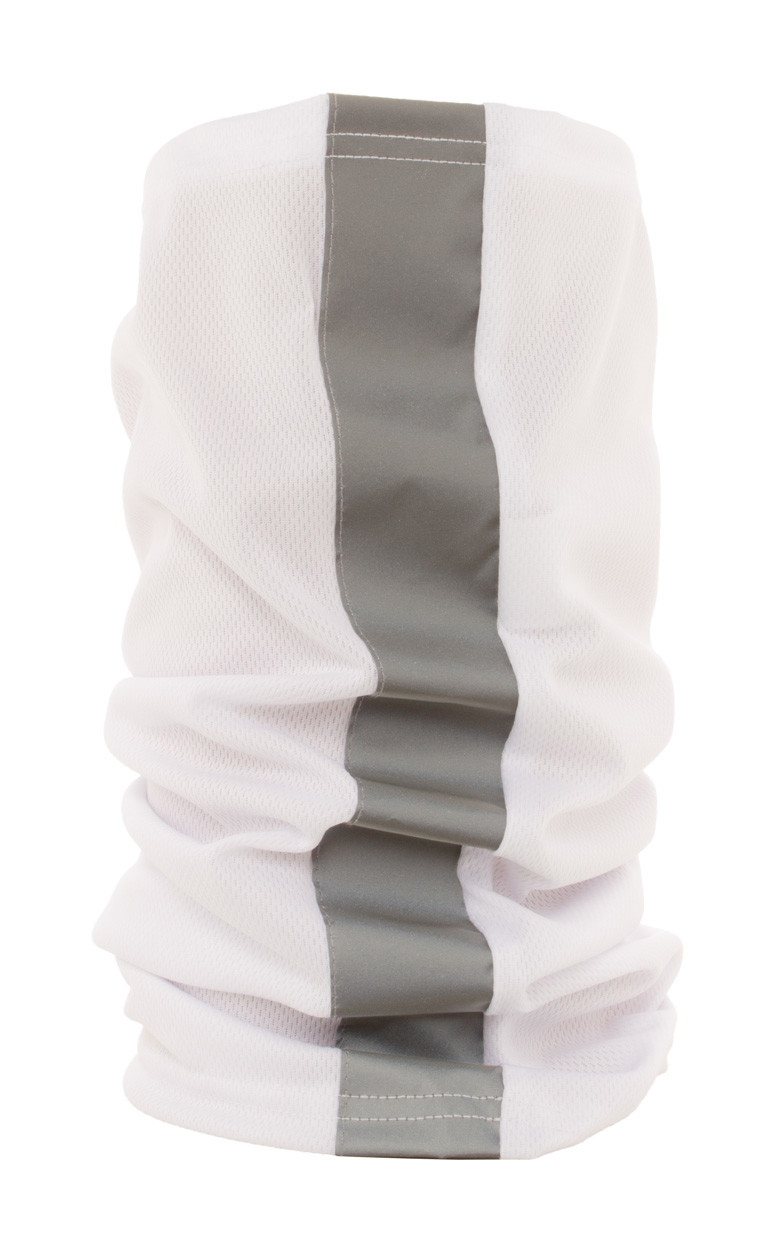 Custom made, multipurpose scarf in breathable and quick-drying polyester with reflective tape. With all-over sublimation printed graphics. Made of 100% polyester (135 g/m²) fabric. MOQ: 100 pcs. For promotional use only, the product does not qualify as a Personal Protective Equipment.