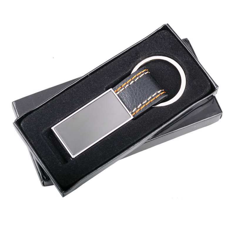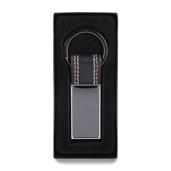 Keyring made from metal and pique PU. Packed in black gift box.