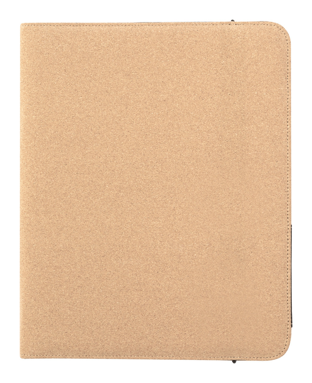 Natural cork document folder with 20 lined sheets notepad and multiple inside organizer pockets.