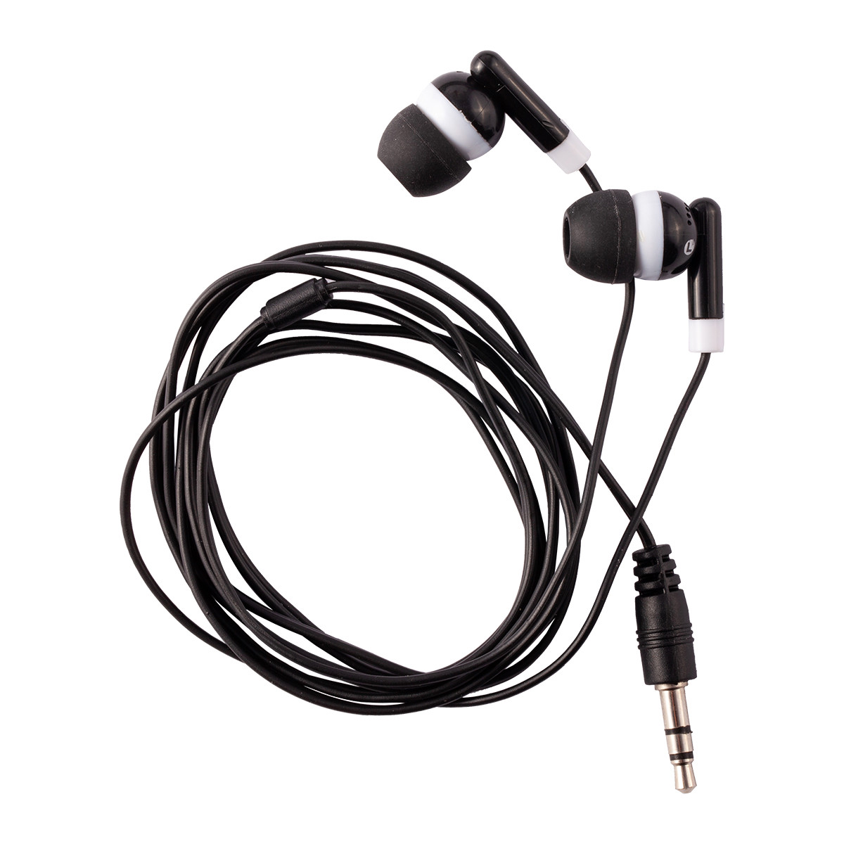 Earphones in plastic case. Impedance: 32Ω +/-15%; Sensitivity: 105+/-6dB; Frequency respond: 20Hz ~ 20KHz; Rated Input Power: 2.5 mW; Maximum Input Power: 5mW; Cord Length: 1.2m; Plug: 3.5 mm diameter.