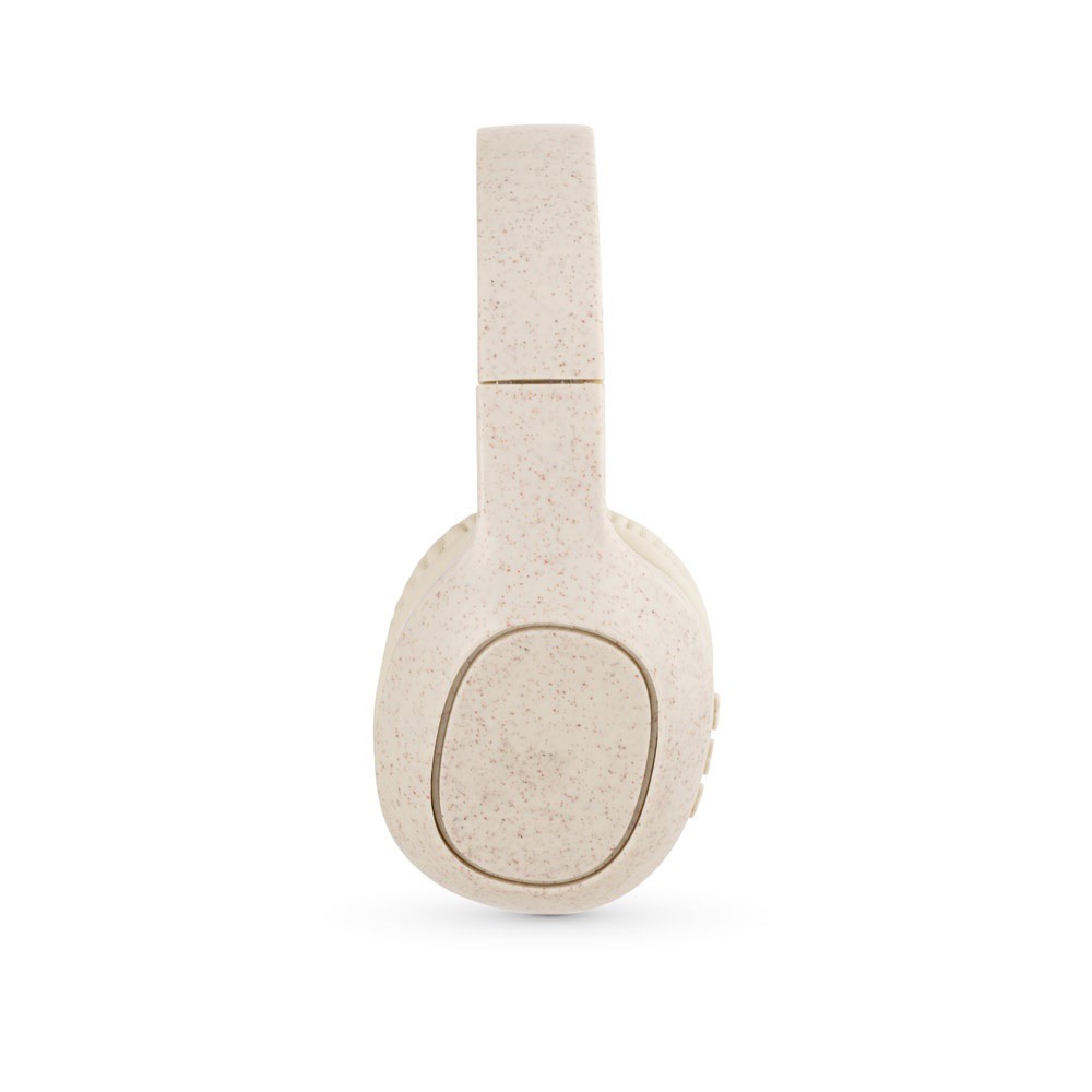 Wireless headphones with a microphone and foldable design for easy portability and storage. When the battery runs out, they can be used through the audio cable.Material: Wheat straw fiber and ABSWireless transmission: BT V5'0Capacity: 400 mAhInput: Micro SD cards and 3'5mm AUXFeatures: Hands-free calling, volume control, and playlist control on your mobile deviceIncludes: USB-A / USB-C charging cable and 3'5mm audio cableSupplied: kraft paper gift box Headphones (closed): 185 x 185 x 74 mm | Box: 120 x 90 x 160 mm
