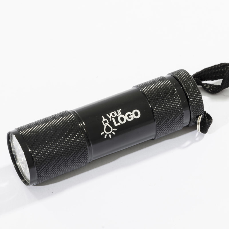 Metal flash light with 9 LED diodes. Logo will be engarved.