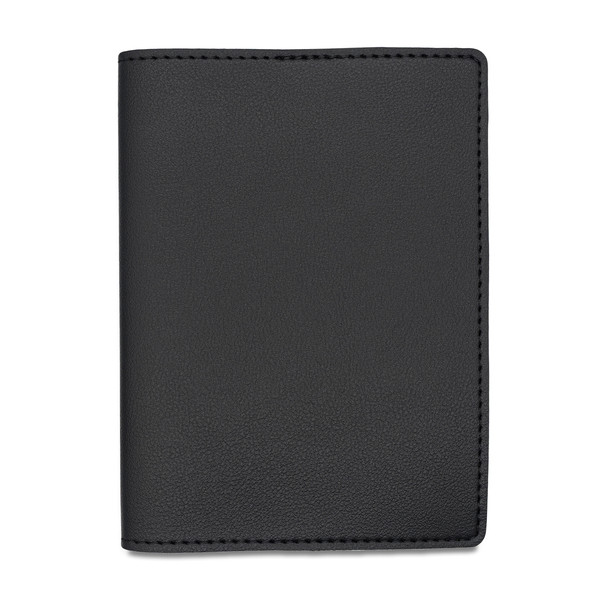 A set of travel accessories: a passport case and a luggage tag.