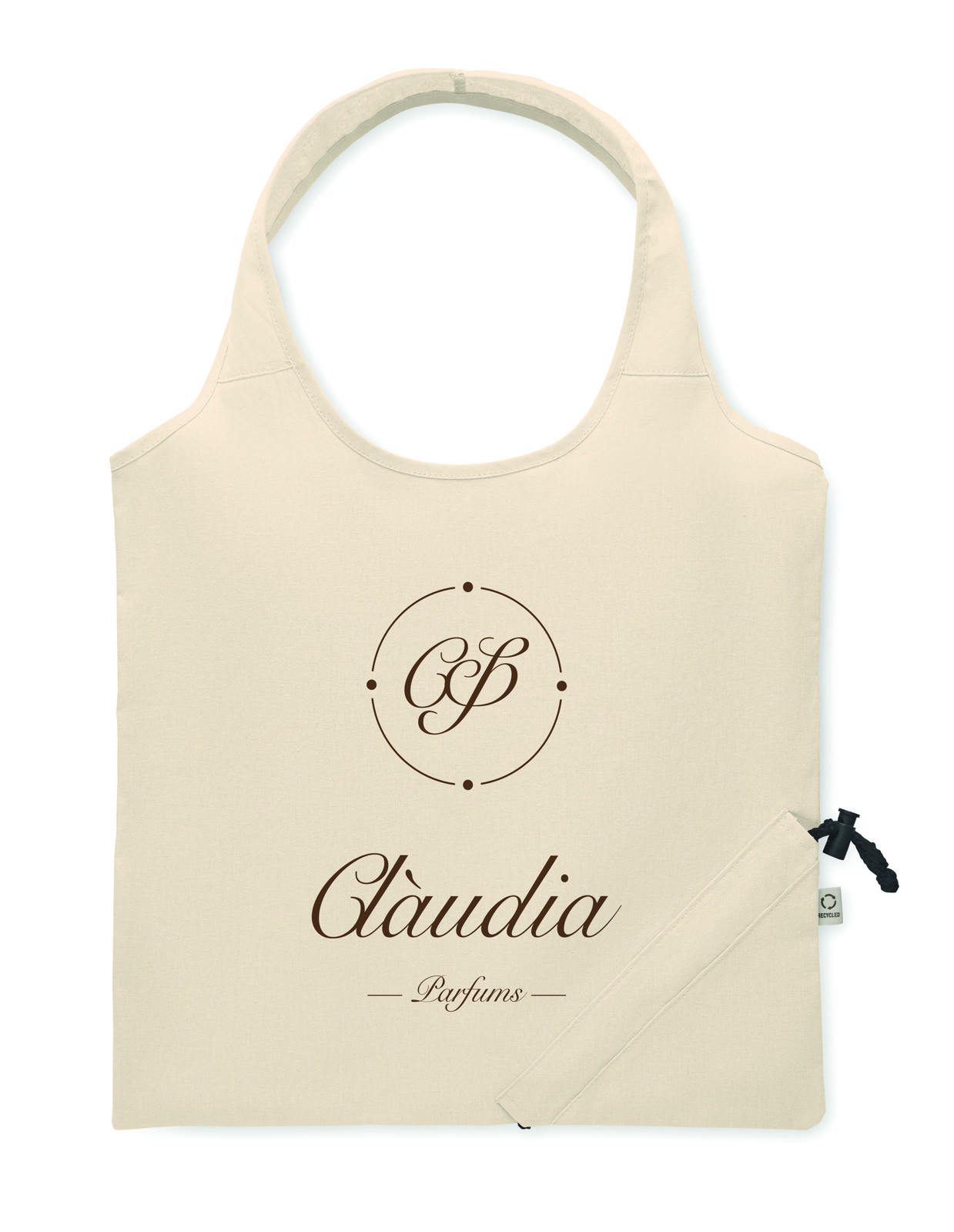Recycled pre-consumer cotton foldable shopping bag (70% recycled cotton and 30% RPET). 140 gr/m².