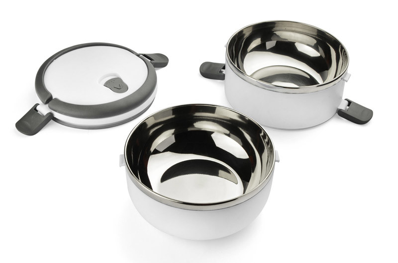 A food container with stainless steel interior will allow you to carry two-course dinnes with you in just one hand thanks to the convenient retractable handles. The container has two compartments - upper one with the seal minimazing the risk of spilling the content. Total capacity: 1400 ml.