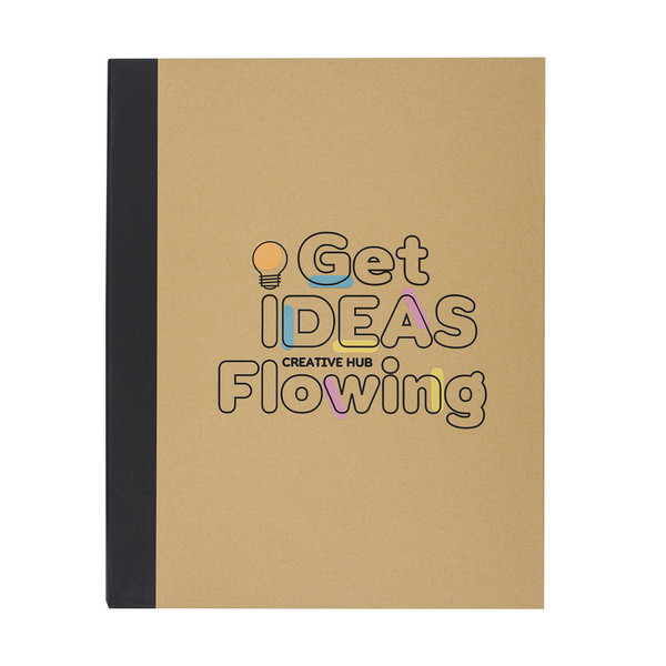 A hard-cover folder with a 25-page lined notebook (70 g/m2). It comes with 25 sticky notes (7,6x10 cm), markers in five colors, 25 pieces each (4,4x1,2 cm) and a paper pocket for business cards. Pen included.