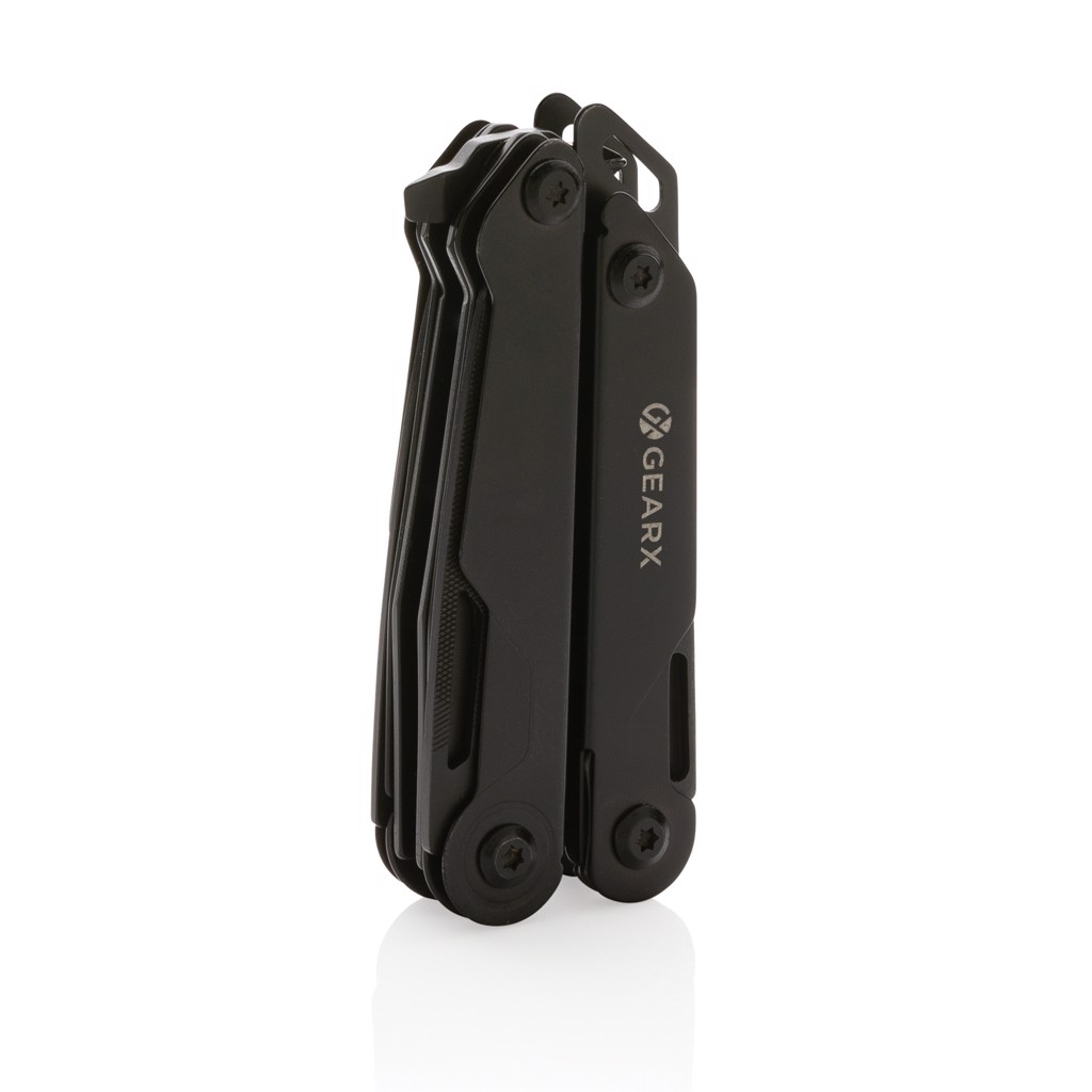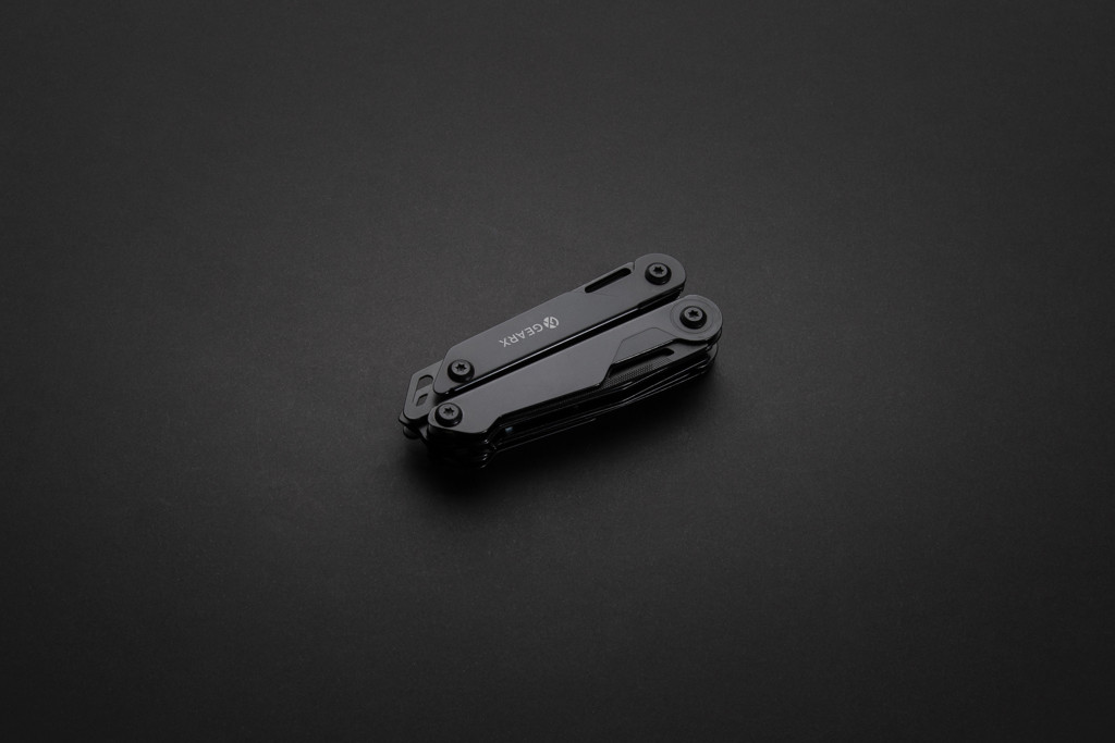 A luxury powerhouse, that is how this tool can be described best. The most versatile and durable tool for you daily jobs both in the house and outdoors. The luxury aluminum body is matched with premium grade 420 stainless steel tools all in solid black. The durable tools are made to last a long time. The 13 functions include: Knife (with lock), file, saw, large slotted screwdriver (with lock), Philips screw driver, slotted screwdriver, pliers, standard pliers, wire cutter, bottle opener, screw driver, seat belt cutter, box cutter. This multifunctional tool is ready for use when you need it. Packed in luxury gift box. Hardness level of tools 40-45 HRC.