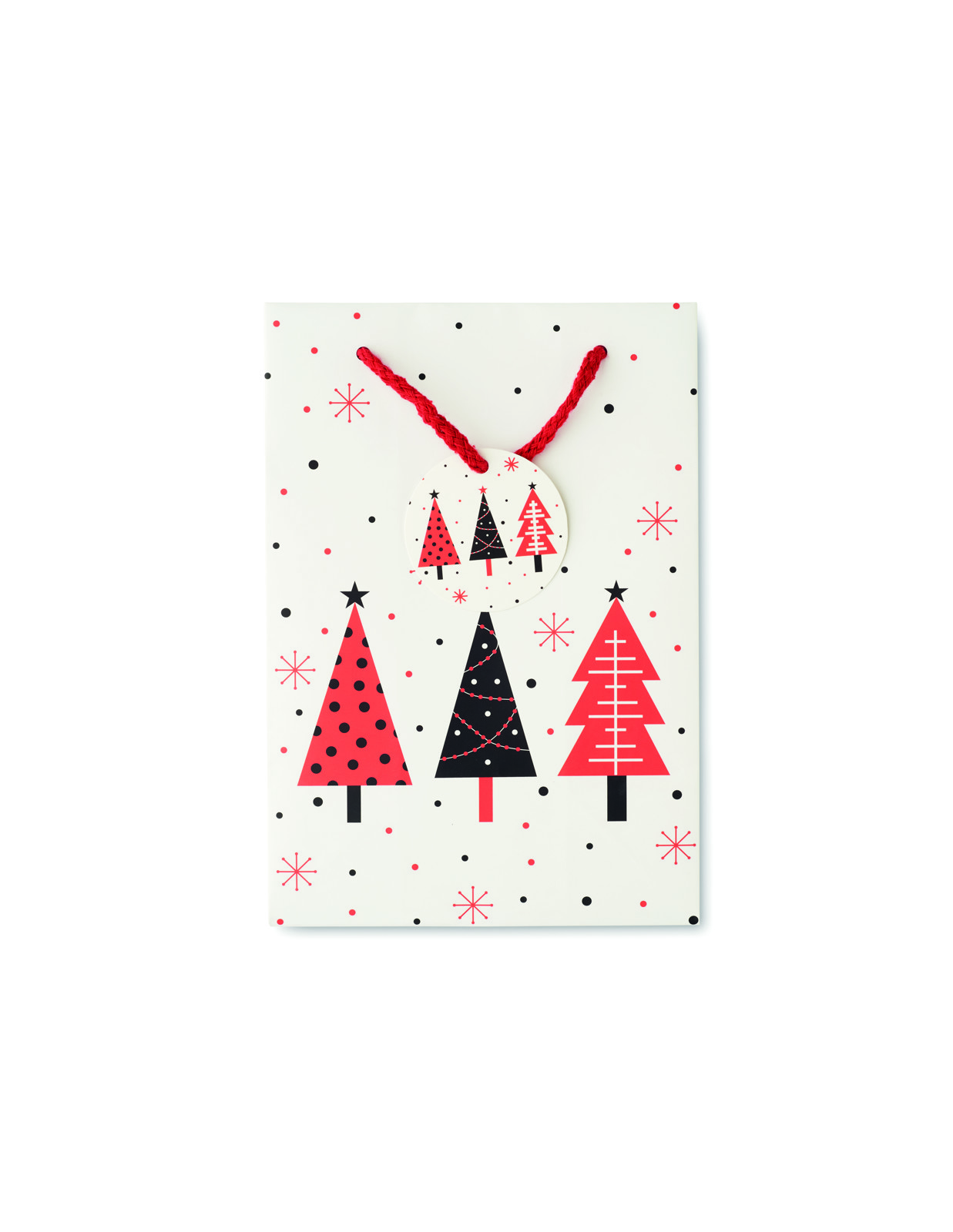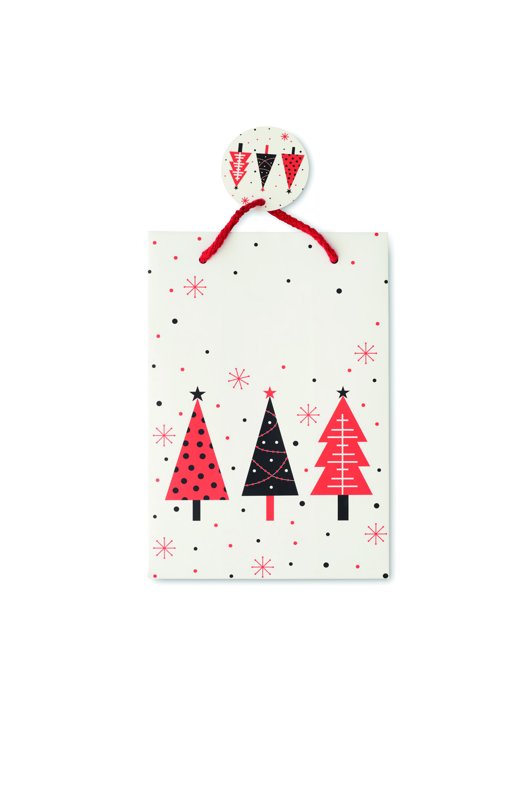 Christmas small gift paper bag (30% recycled) with tag included. 128 gr/m². FSC®-certified | FSC MIX, P5.3, FSC-C213206