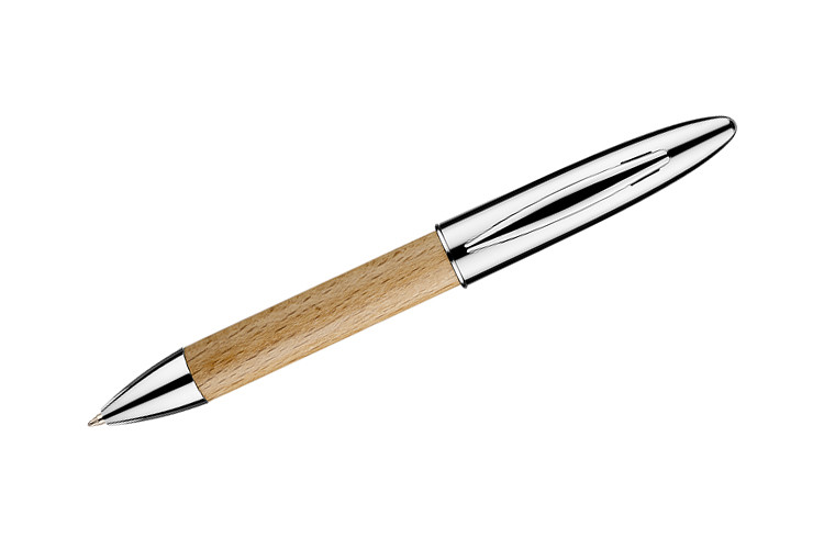 Eco-friendly gift set consisting of a ball pen and a keychain made of metal and wood. Black refill in a ball pen. We can make the engraving on the pen or print your logo on the box.