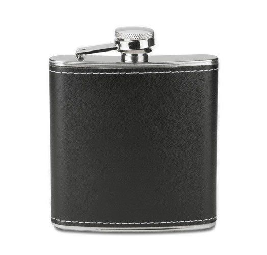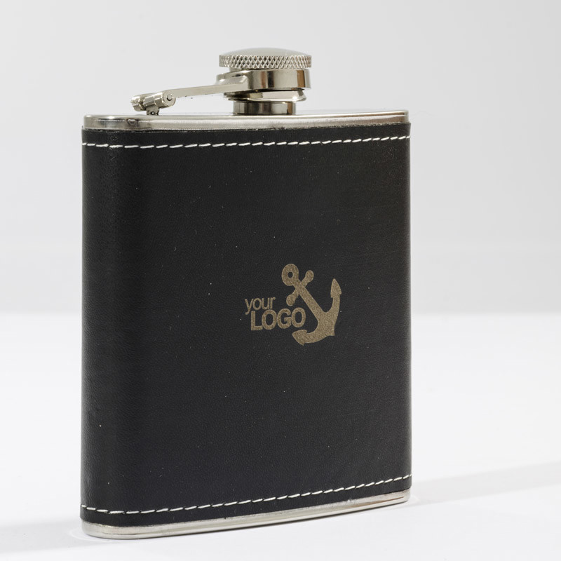 Stylish 6 oz (approx. 180 ml) Banff flask made of stainless steel, finished with leather-like material (PU) . We will engrave your logo on the flask.