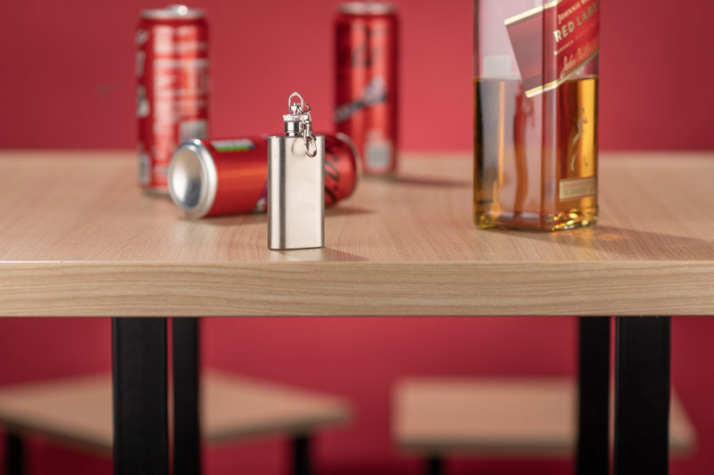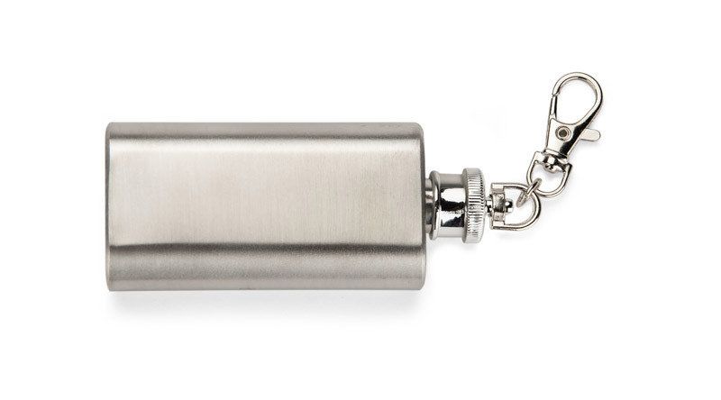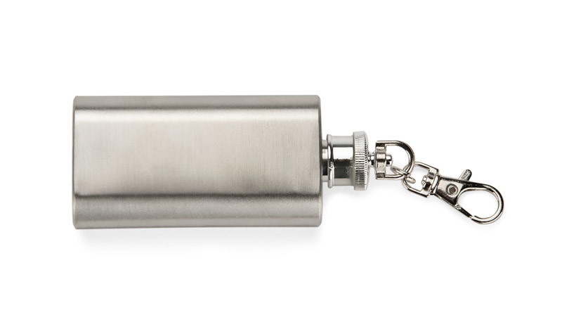 The FLASIK 50 ml flask key ring is an elegant and practical promotional gadget, combining the functionality of a mini flask with the convenience of a key ring. Made from stainless steel with a matt finish, it provides durability and a stylish look. The airtight seal allows for the safe storage of 50ml of liquid and the snap hook allows for easy attachment to keys, backpack or belt. Ideal as an original corporate gift with the option of laser engraving branding. A great choice for brands looking for original and durable promotional gadgets.