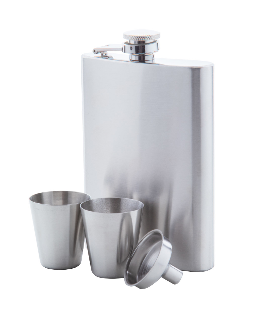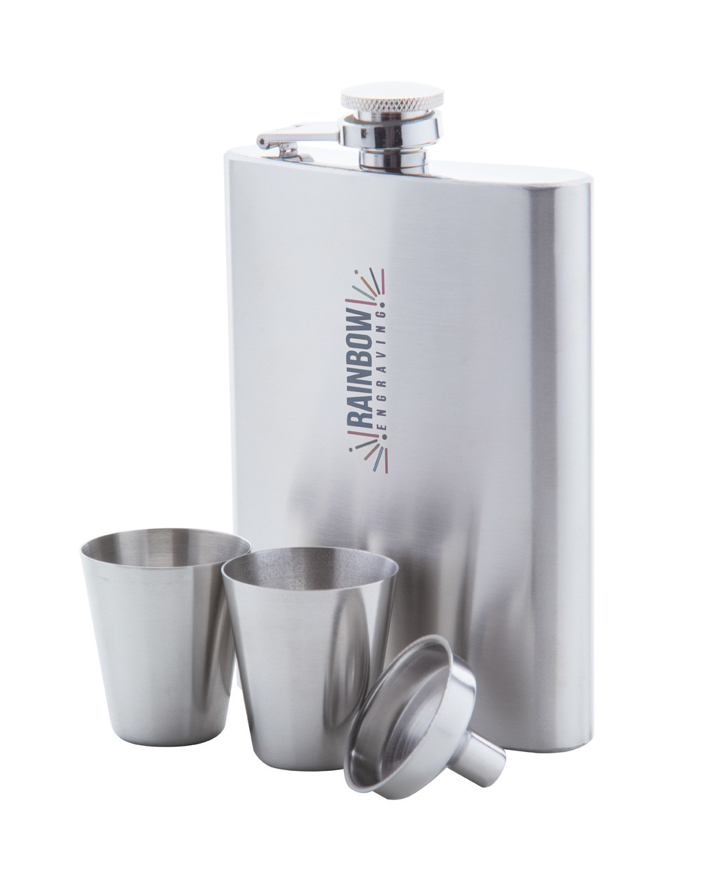 Stainless steel hip flask with 2 shot glasses and a funnel, 230 ml. In black gift box.