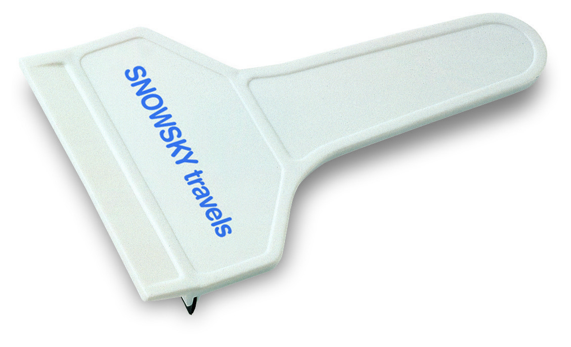 Ice scraper and sweeper with handle.