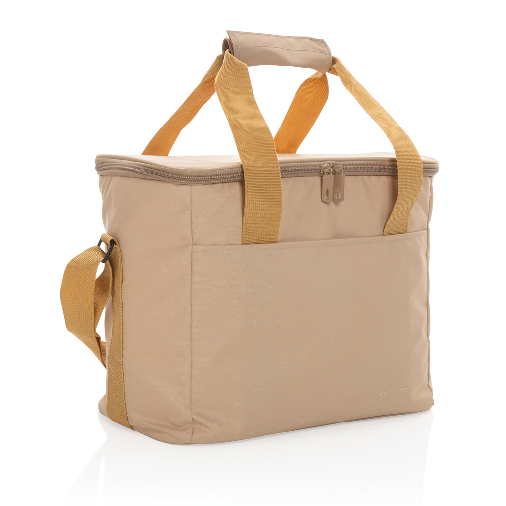 Pack your favourite food or beverages in this cooler bag! This beautiful large cooler bag can store up to 20 cans. With one front pocket for extra storage. All the hardware details are in the same colour as the exterior. Incorporating the AWARE™ tracer that validates the genuine use of recycled materials. Each cooler bag reused 10.3 PET bottles. 2% of proceeds of each Impact product sold will be donated to Water.org. Composition exterior 100% recycled polyester. Lining in PEVA.