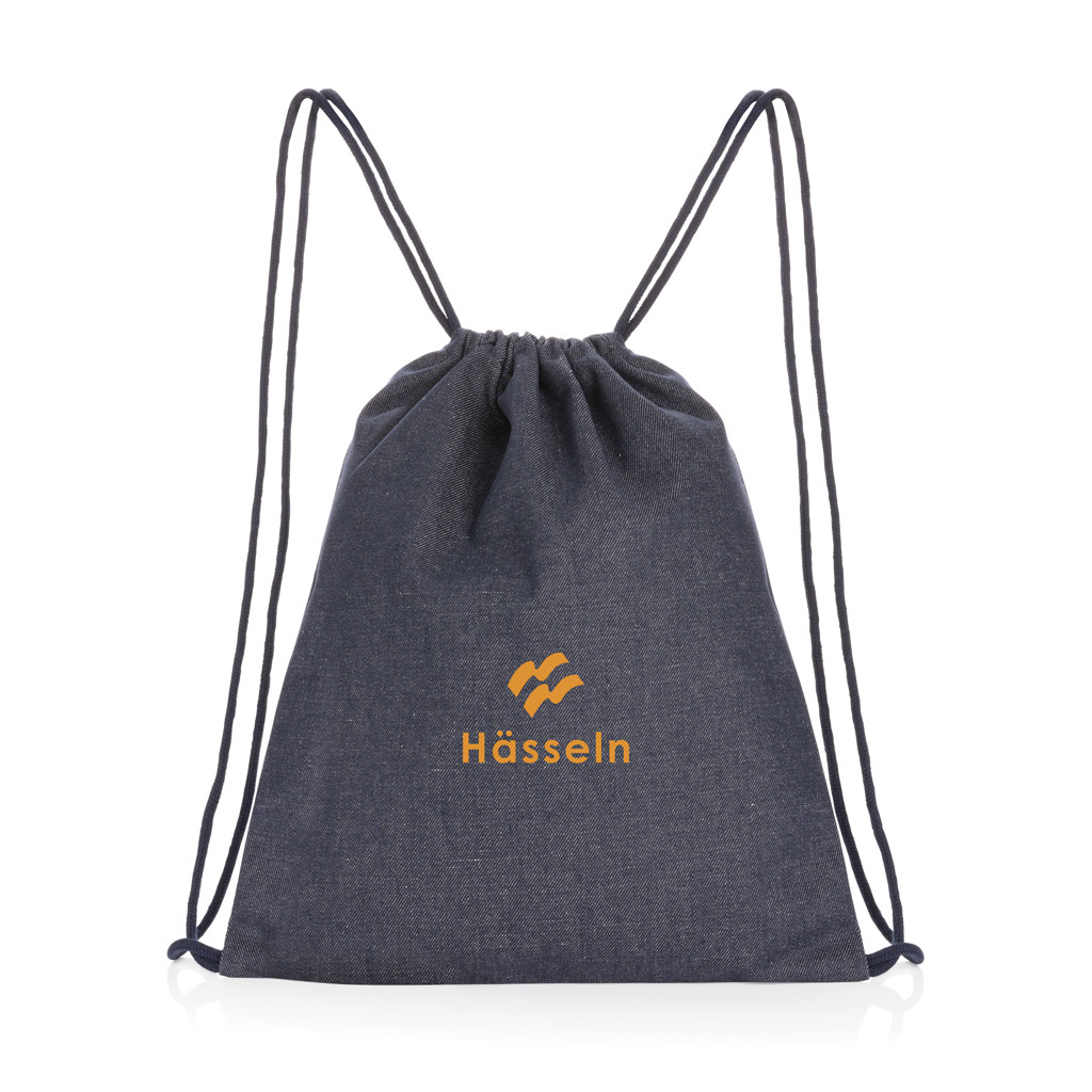 The Impact AWARE™ recycled denim 320 gsm drawstring backpack provides ample storage for all your essentials in style. With AWARE™ tracer that validates the genuine use of recycled materials. 2% of proceeds of each Impact product sold will be donated to Water.org. Composition of the recycled denim: 70% recycled cotton, 30% recycled polyester.