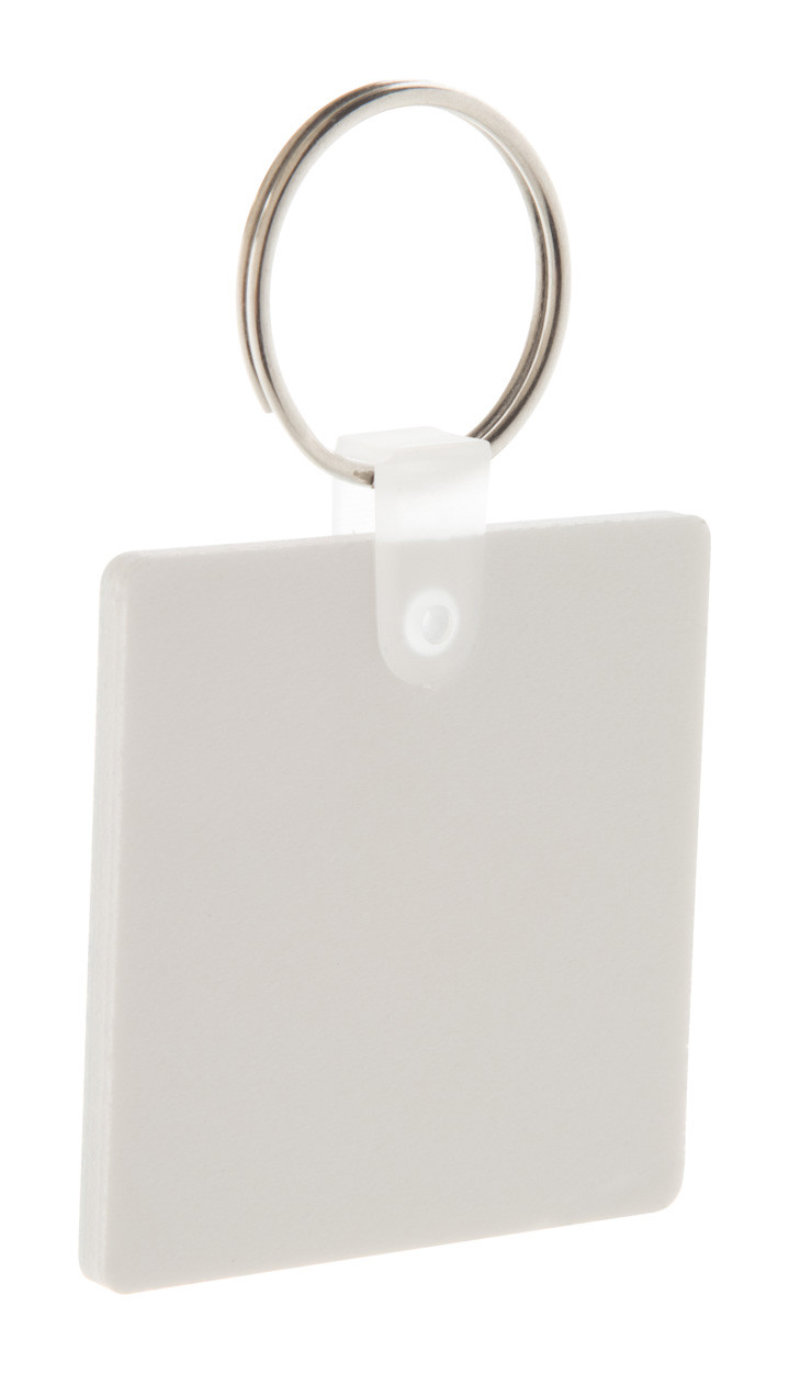Square shaped, PVC foam keyring with full colour printing. Price includes UV LED printing. MOQ: 200 pcs.