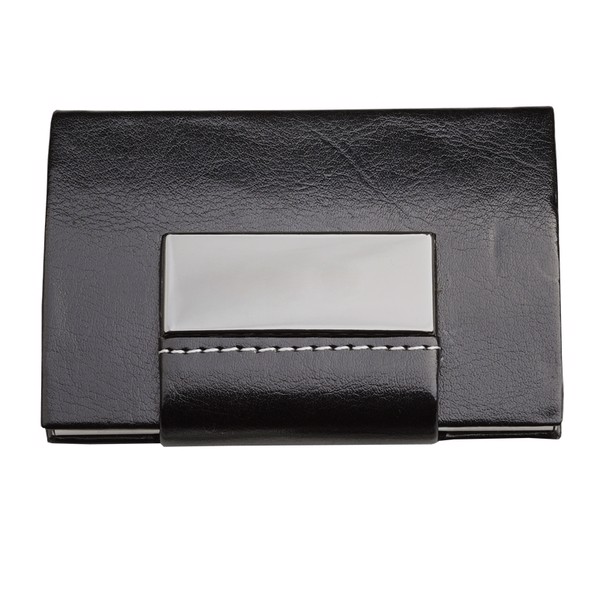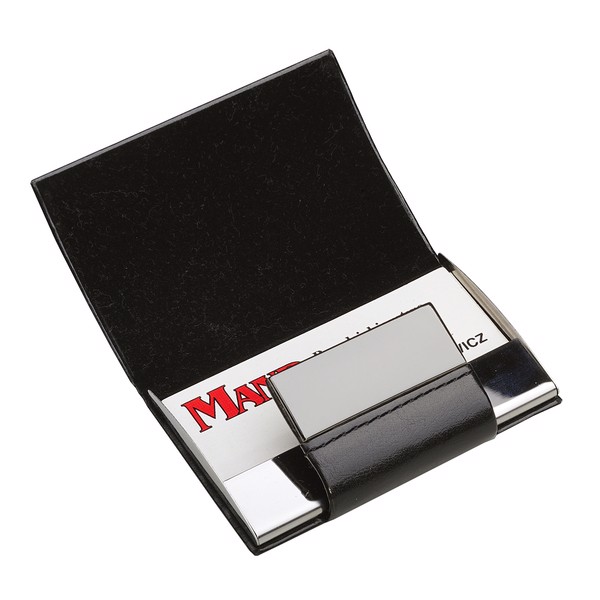 Business card case made of PU with a magnetic closer. Holds 15 business cards.