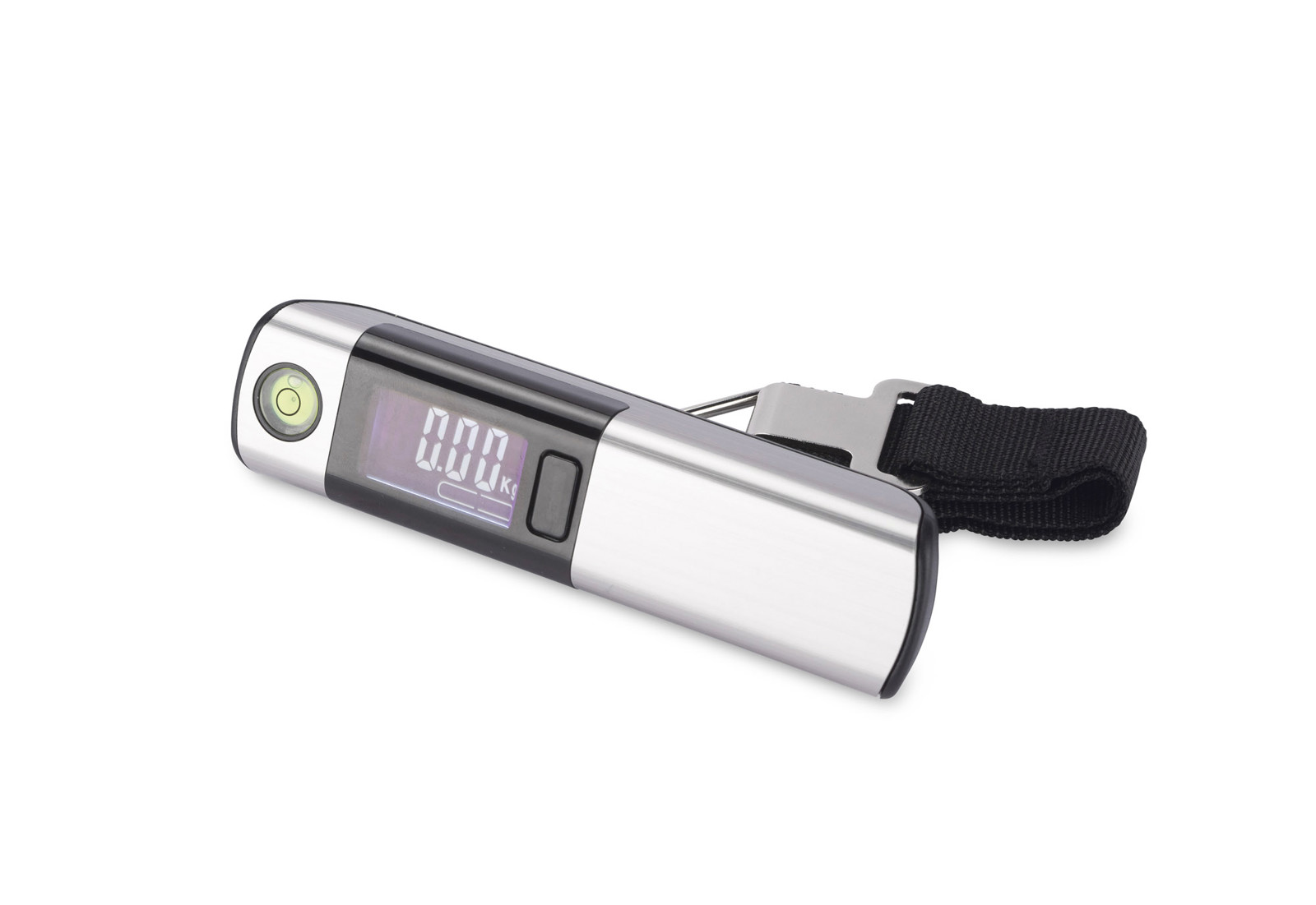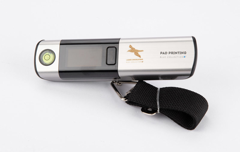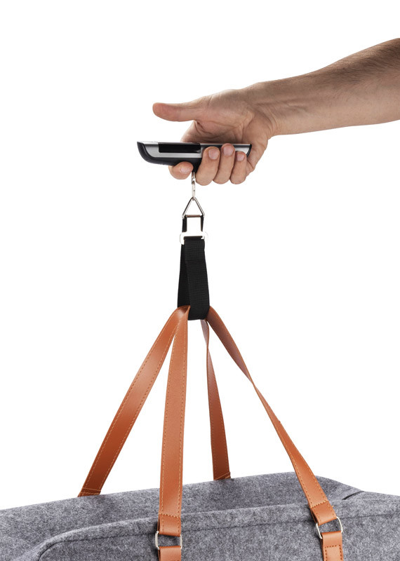 TRAVELI luggage scale with integrated LED screen showing weight in 3 units: Oz, Lb, Kg. Tare function, battery indicator, alarm when the suitcase weight is exceeded (20kg), weight indicator - scale 0-20 kg, interval every 2 kg. Maximum load: 50kg. In addition, the product is equipped with a 1 metre long tape measure and spirit level. Powered by a CR2032 battery.