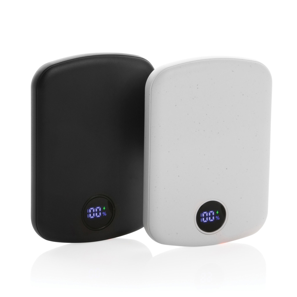 5000 mAh pocket size powerbank with 15W magnetic wireless charger with a case made out of RCS certified recycled ABS plastic. RCS (Recycled Claim Standard) is a standard to verify the recycled content of a product throughout the whole supply chain. Total recycled content: 21 % based on total item weight.The powerbank contains a long lasting grade A 5.000 mAh lithium polymer battery. The integrated digital LED screen will indicate the remaining energy level so you always know when to re-charge.; Type-C Input 5V/2.4A; Type C output:5V/2A.4A Item and accessories PVC free. Including RCS certified recycled TPE charging cable. Packed in FSC® mix packaging. Type-C Input: 5V/3A 9V/2A 12V/1.5A; Output: USB-C output: 5V/2.4A,9V/2.22A,12V/1.67A; Wireless output: 15W