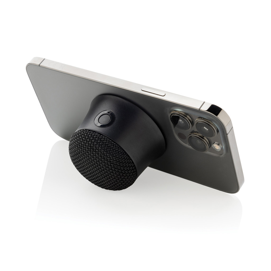 Magnetic 5W wireless speaker that can easily be attached to the back of a mobile device that supports magnetic mounting. Simple click it on and you can start using the speaker as a mobile stand while playing your favourite music. The speaker can also easily be attached to other magnetic surfaces like fridges. The speaker is made with RCS (Recycled Claim Standard) certified recycled ABS. Total recycled content: 22% based on total item weight. RCS certification ensures a completely certified supply chain of the recycled materials. Magtune comes with a 650 mah A-grade battery that allows a play time of up to 5 hours and can be re charged in 2 hours. It uses BT 5.0 for smooth connection and easy automatic pairing. Including type C charging cable made from RCS certified recycled TPE. Packed in FSC® mix packaging. PVC Free.