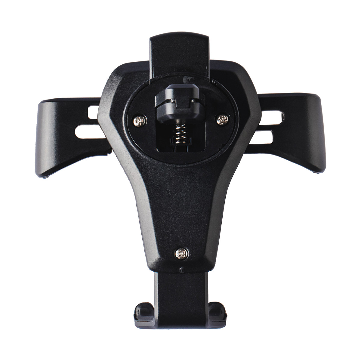 The phone holder is mounted to the car's ventilation grille. Under the weight of the phone, the arms automatically adjust to its size. Thanks to its design, the handle can be operated with one hand. It is stable because it supports phone in four points. Mobile is not included.