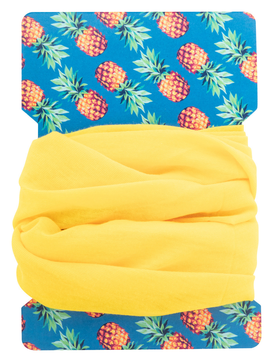 Custom made, paper display card for multipurpose scarf. Ideal for all adult size multipurpose scarfs. Price includes full colour printing on both sides. MOQ: 100 pcs.