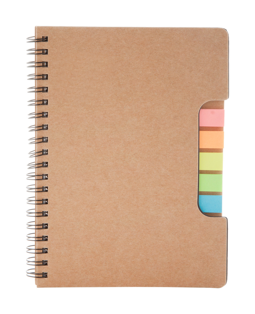 Recycled paper spiral notebook with 60 lined sheets and page markers (5 × 25 pcs).