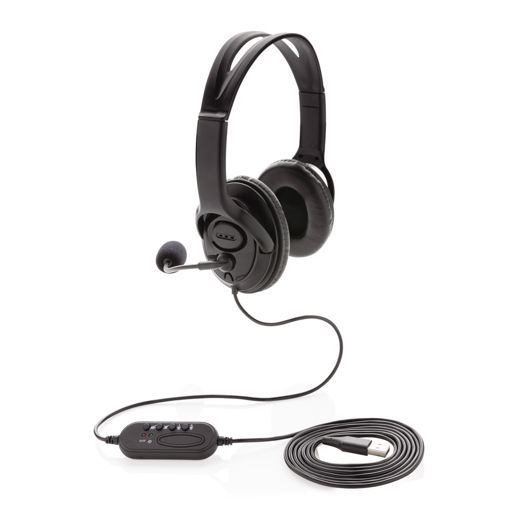 PC USB stereo headset with in-line soundcard and volume/mute control delivers superlative stereo sound while its microphone ensures clear conversation during calls. This lightweight ABS material over-ear headset is designed for daily long time use and compatible with PC and Mac®. With 2 metre USB A cable to give optimal connection with any computer. Perfect for calling and video calls.
