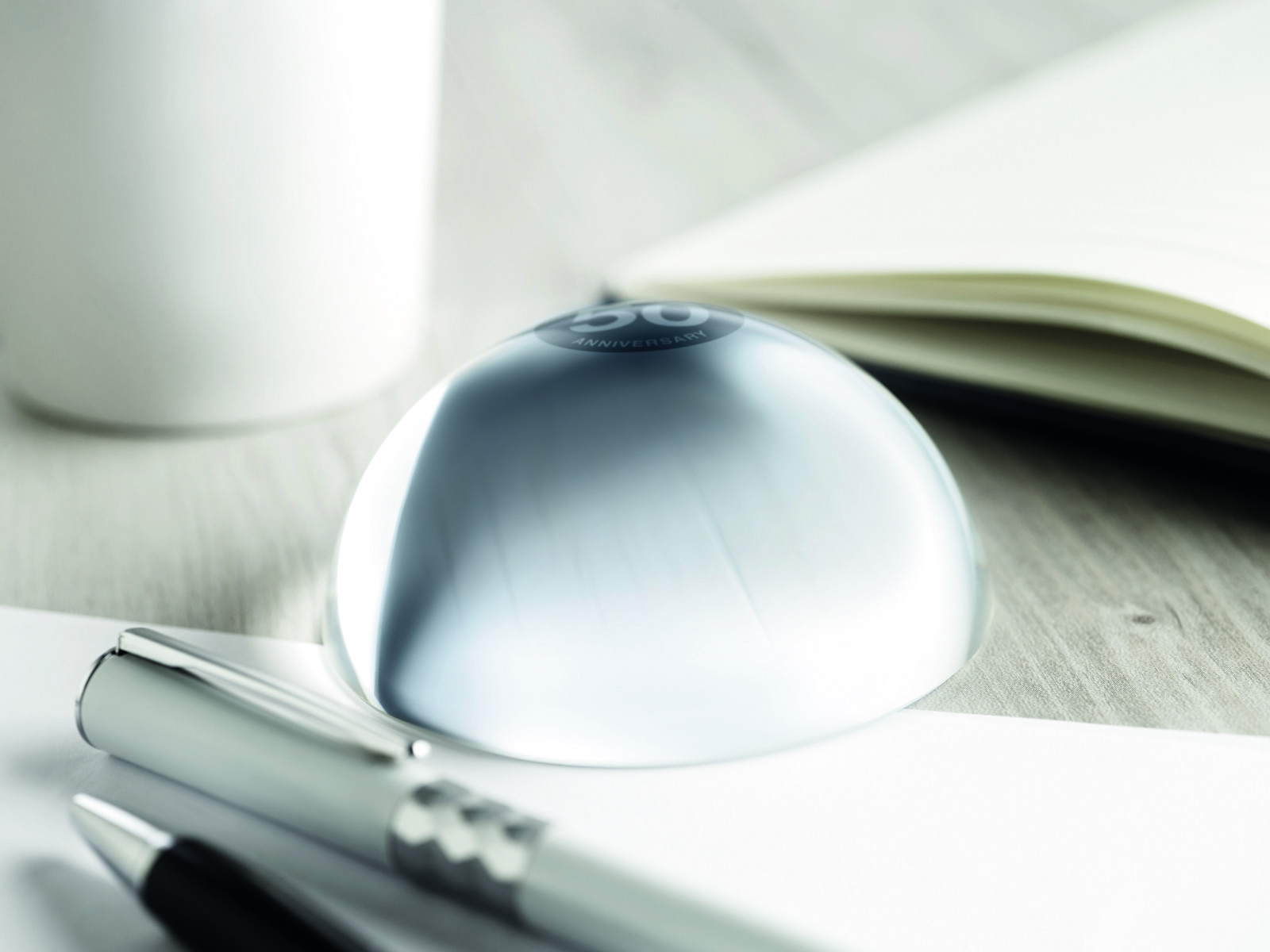 Paperweight glass ball and magnifier presented in gift box.