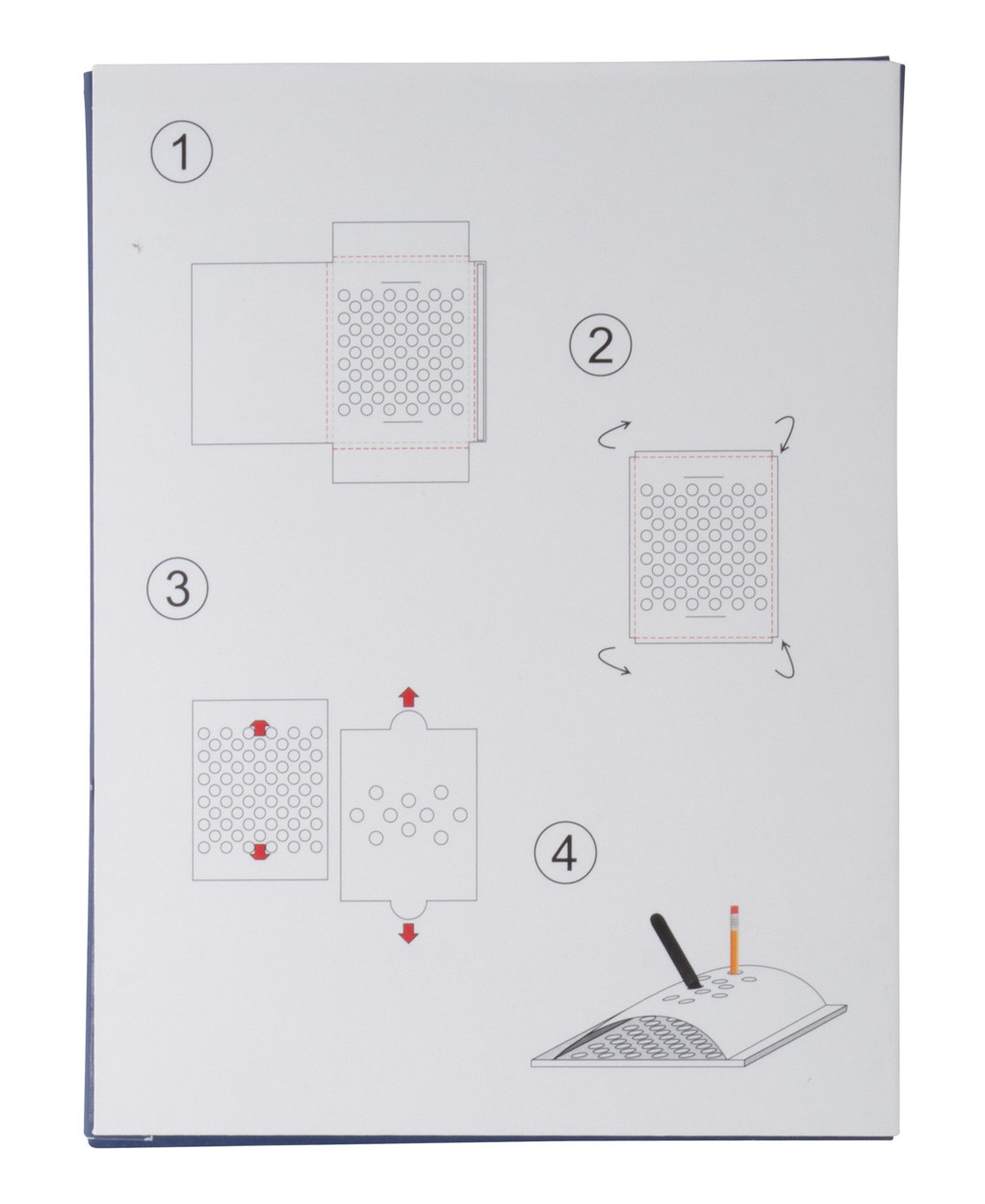 Custom made paper pen holder. Price includes full colour printing. MOQ: 100 pcs. Delivered flat-packed.