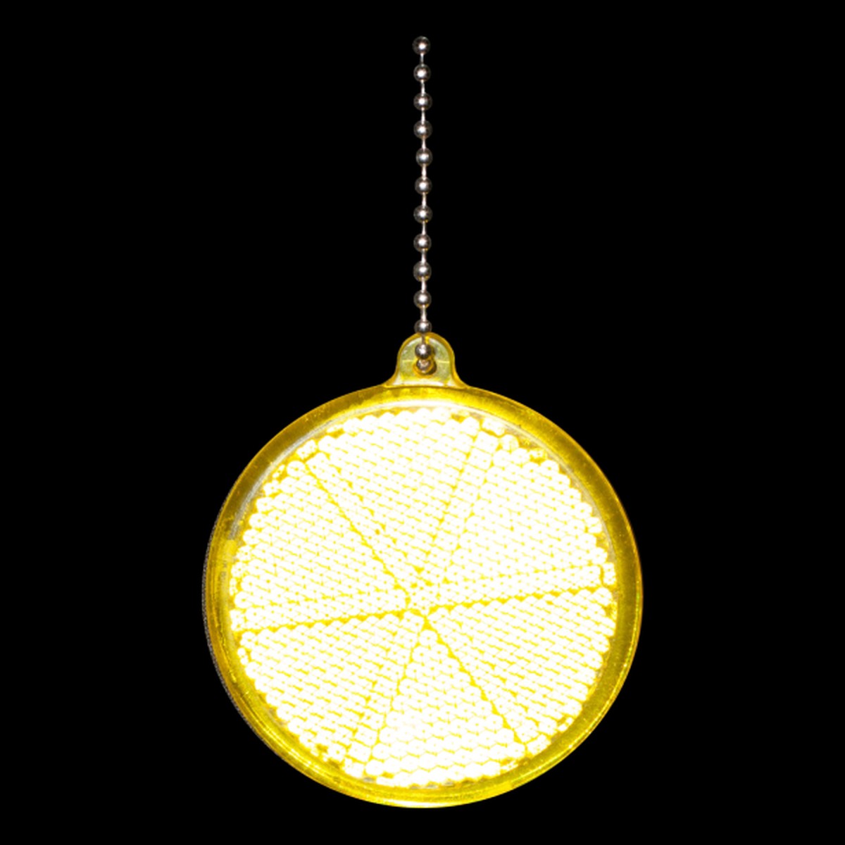 Ring-shaped reflective-coated keyring with expandable pendant.
